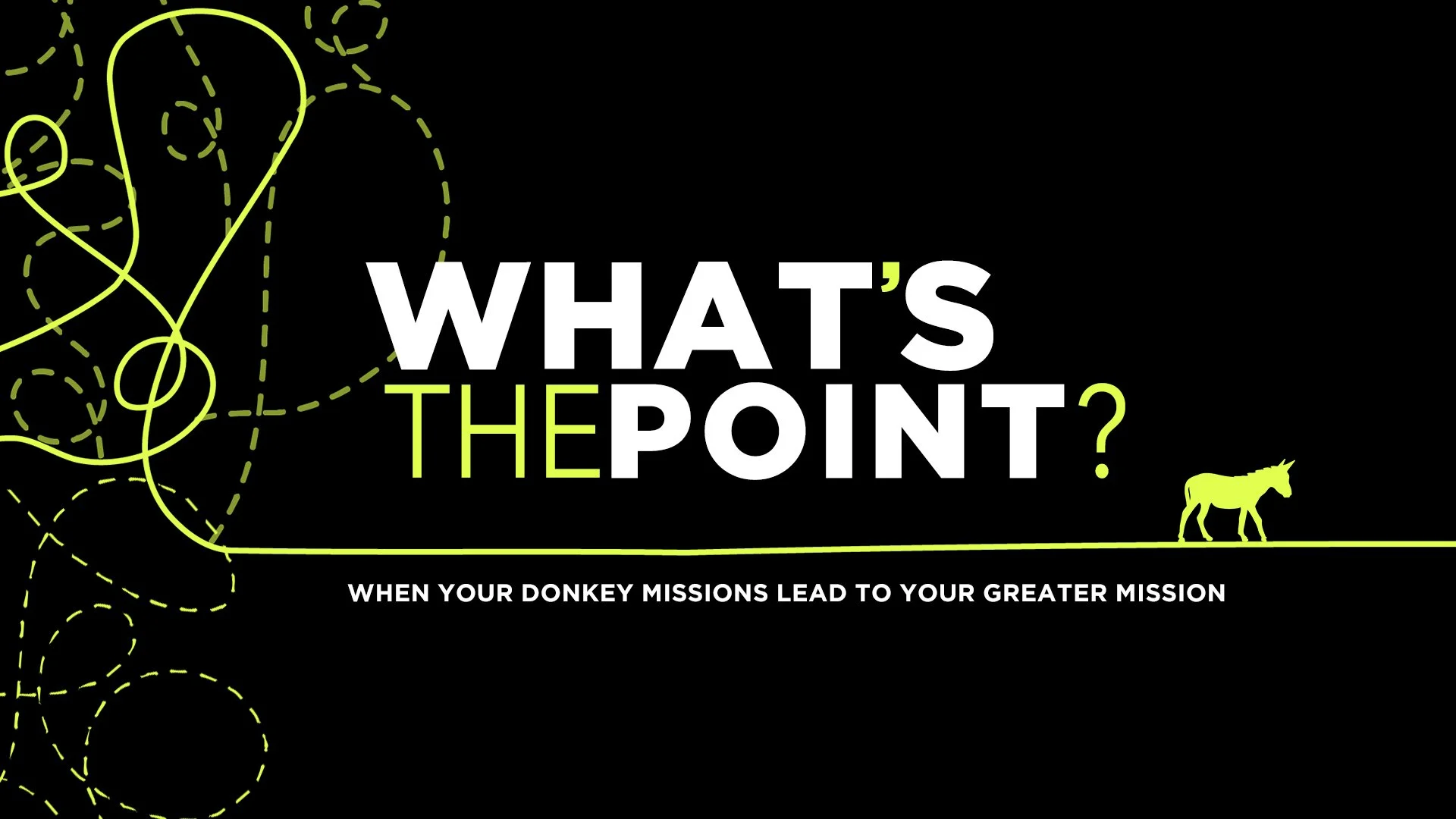 Join us in October for a 4-week series that explores the question, “What’s the point?” Based on Pastor Matt Keller’s book titled ‘Donkey Mission,’ this is a great opportunity to invite friends to attend Elevation and enjoy some extra surprises we have in store!
